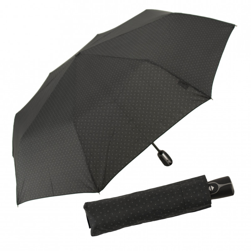 W pełni automatyczny parasol męski. Rama parasola wykonana jest z połączenia włókna szklanego, stali i aluminium, co gwarantuje wytrzymałość i stabilność. Obracanie parasola nie spowoduje jego uszkodzenia. Odporny na korozję. Poliestrowe poszycie jest odporne na zmiany wilgotności i temperatury, nie kurczy się.