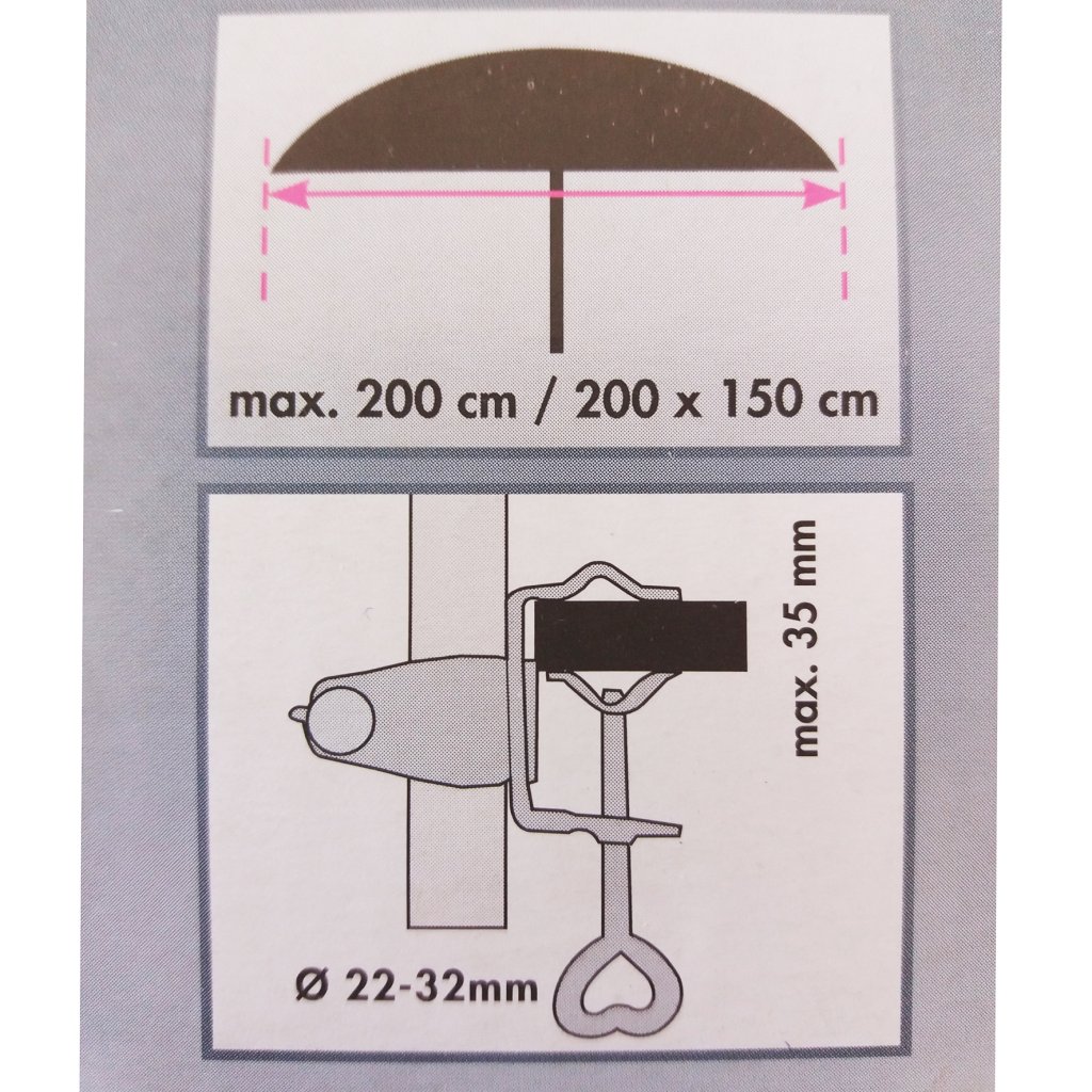 Zacisk kempingowy do mocowania parasoli na stole podczas podróży.