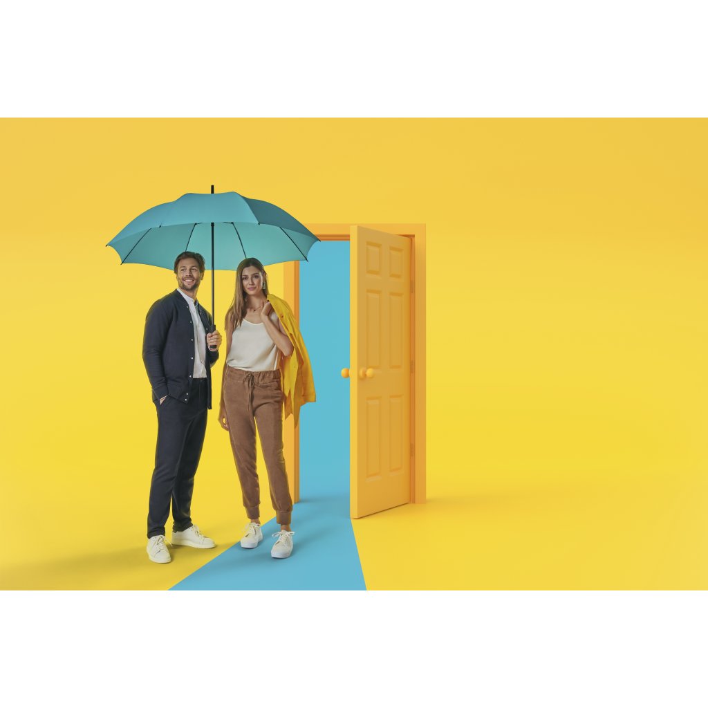 Partnerski parasol z rączką. Bardzo wysokiej jakości konstrukcja z włókna szklanego i aluminium. Dwa ostatnie segmenty wykonane z włókna szklanego, co zapobiega uszkodzeniu parasola podczas wiatru i ułatwia jego powrót do pierwotnej pozycji. Duża czasza. Poliestrowa poszycie jest odporne na zmiany wilgotności i temperatury, nie kurczy się.