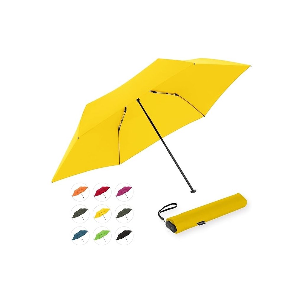 Stylowy, kieszonkowy, ultralekki parasol w wielu wersjach kolorystycznych. Dzięki wadze zaledwie 99 gramów (lżejszy niż tabliczka czekolady) jest najlżejszym parasolem doppler. Dzięki kompaktowym wymiarom (długość złożonego parasola to 21 cm) i płaskiemu kształtowi bez problemu schowasz go do każdej torebki lub marynarki. Ramiona z aluminium i karbonu. Pokrowiec jest ze 100% wytrzymałego poliestru.