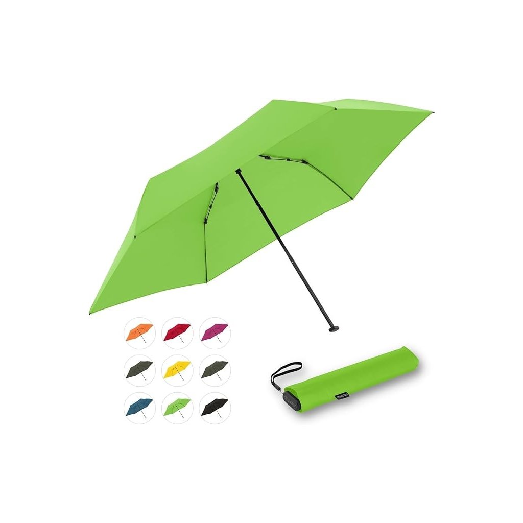 Stylowy, kieszonkowy, ultralekki parasol w wielu wersjach kolorystycznych. Dzięki wadze zaledwie 99 gramów (lżejszy niż tabliczka czekolady) jest najlżejszym parasolem doppler. Dzięki kompaktowym wymiarom (długość złożonego parasola to 21 cm) i płaskiemu kształtowi bez problemu schowasz go do każdej torebki lub marynarki. Ramiona z aluminium i karbonu. Pokrowiec jest ze 100% wytrzymałego poliestru.